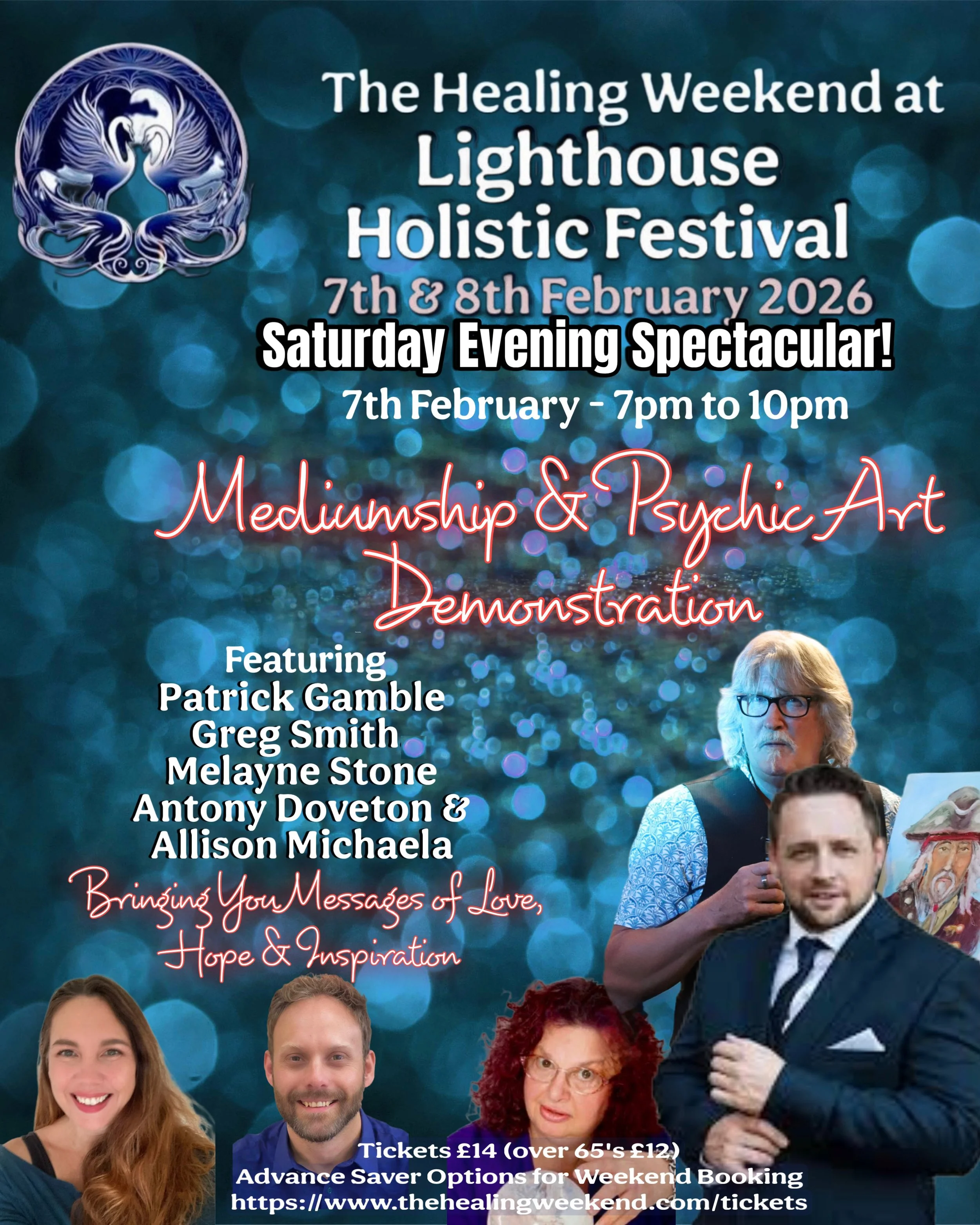 Come and join us as these superbly talented people demonstrate their wonderful gifts - each in their own unique way, connecting to your loved ones, and the higher realms in order to bring you messages which will bring love, hope, encouragement and upliftment - often with splashes of joy and laughter too.